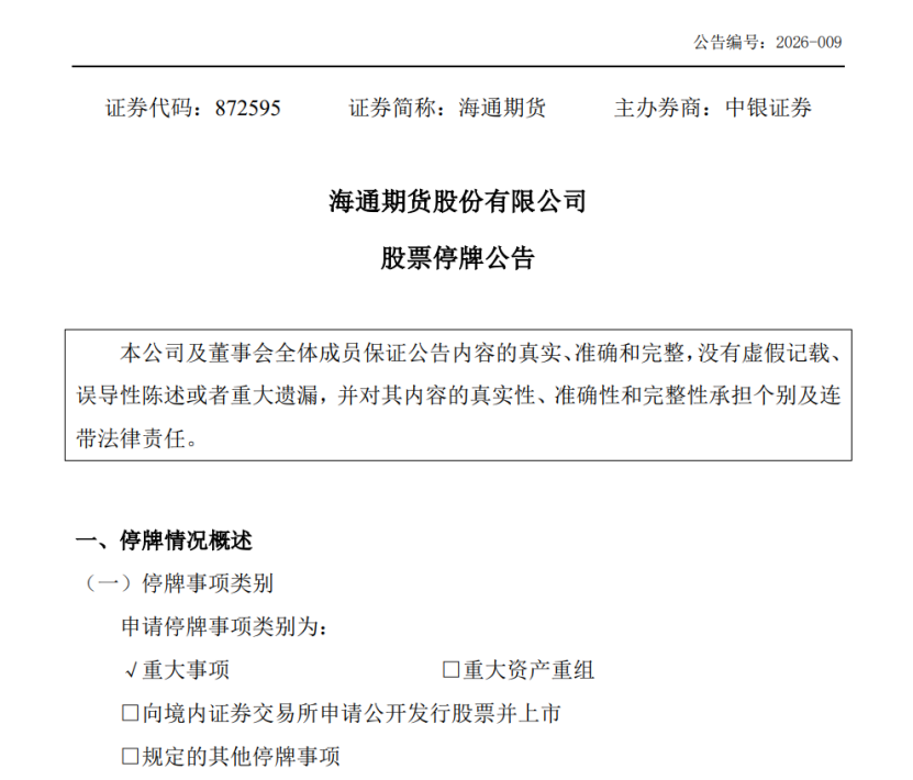 4月20日晚间,海通期货公告称,拟筹备推动与国泰君安期货合并重组相关工作,申请股票停牌。本次停牌将自4月21日起,预计将于5月8日前复牌。